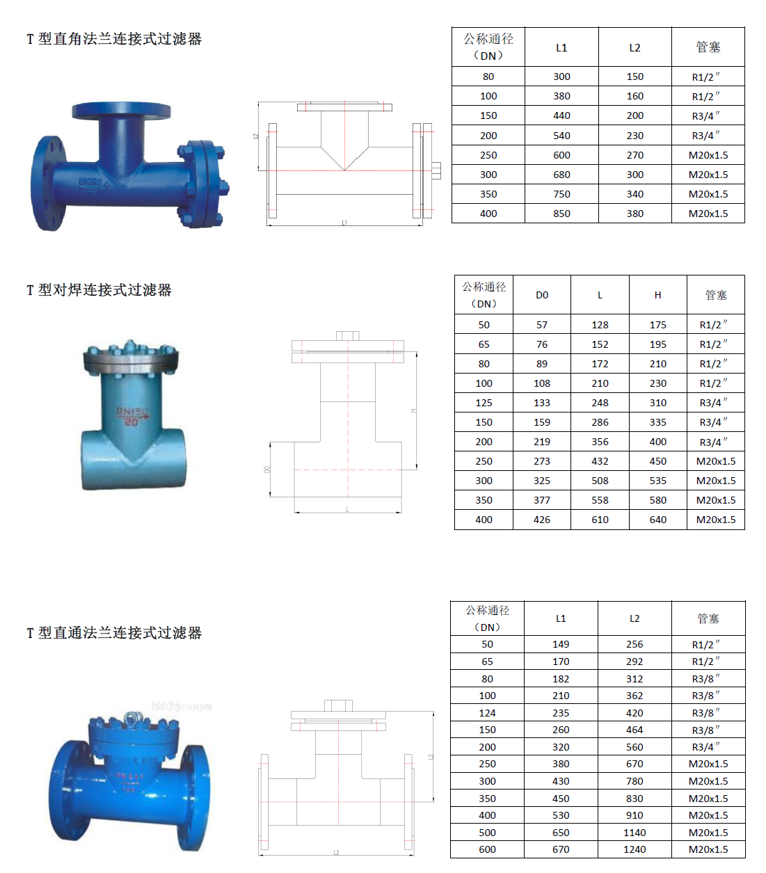 直流式T型過濾器 折流式T型過濾器